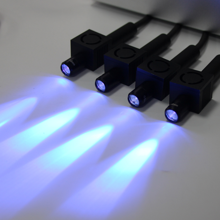 uvled點光源輸出光源的質(zhì)量是由其內(nèi)部芯片決定的,UVLED燈珠的芯片越好,產(chǎn)生的光源能量高,光源越穩(wěn)定。目前市場上常見的是芯片有:國產(chǎn)芯片和日韓進(jìn)口芯片為主,其中以日韓進(jìn)口燈珠發(fā)光效果比較好。同時在照射頭的前端采用聚光鏡頭設(shè)計,使光源更加集中,提高光源的利用率。UVLED點光源照射頭配有具有多種規(guī)格的透鏡尺寸,有(?1.5mm-?20mm)透鏡大小,照射距離可達(dá)5-40mm,適合不同行業(yè)領(lǐng)域的使用。