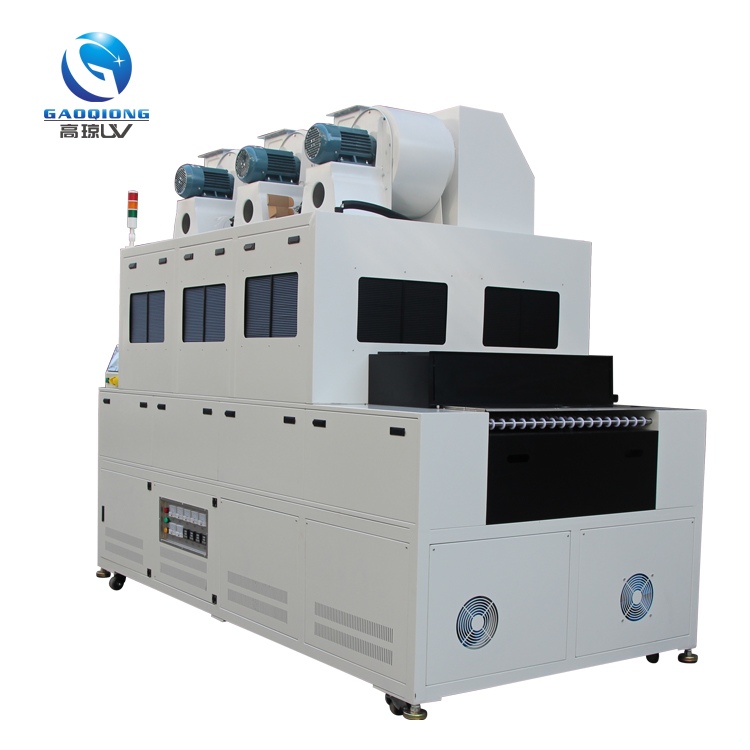 3、開啟UV燈強(qiáng)光開關(guān),調(diào)整傳送速度,直至能量達(dá)到產(chǎn)品所需要求后待機(jī)生產(chǎn)。