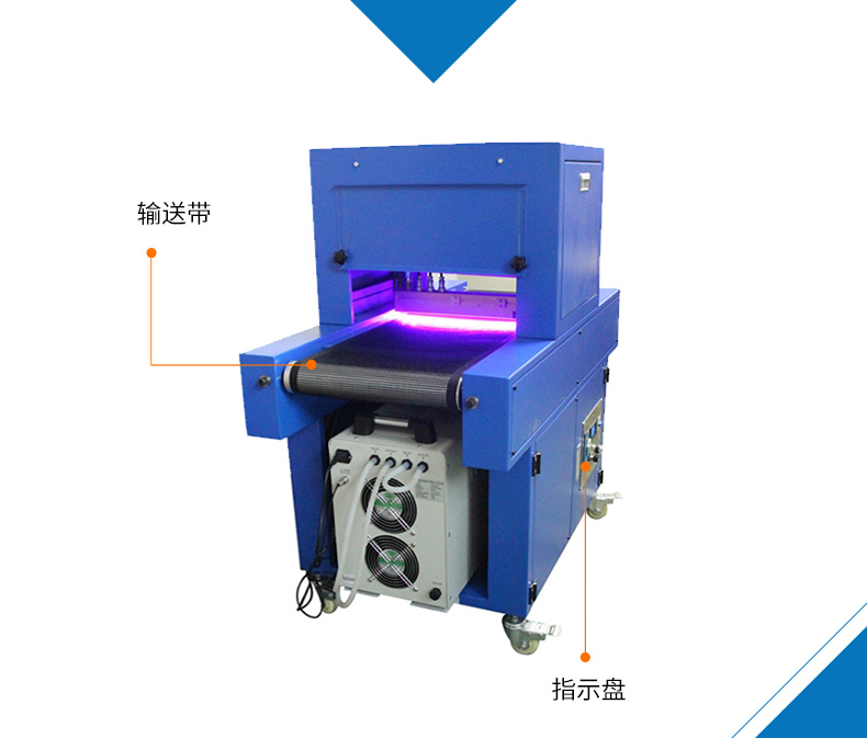 UV機(jī)底部安裝腳輪和腳杯,方便UV機(jī)移動(dòng)和調(diào)節(jié)高度
