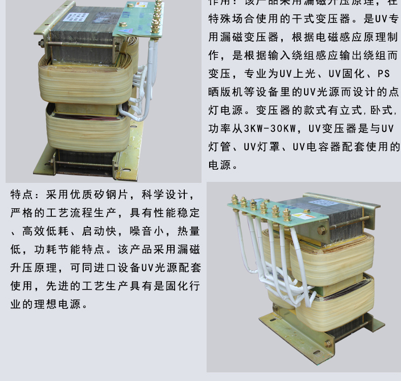 產(chǎn)品規(guī)格:品牌:高瓊材質(zhì):銅/鋁功率:3kw-20kw均可訂制輸入電壓:380v輸出電流:5A-10A燈管管壓:700v-1550v適配電容:10+2+3UF適用范圍:涂裝行業(yè)、印刷行業(yè)、木工家具行業(yè)、PBC電路板行業(yè)、醫(yī)療、玻璃粘貼等UV油墨、UV漆、UV膠等固化或PS曬版等領(lǐng)域。